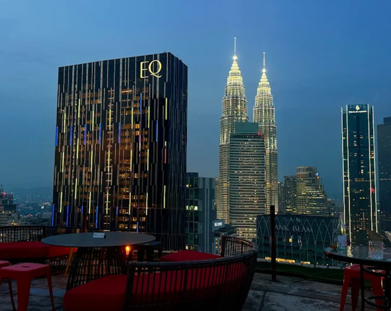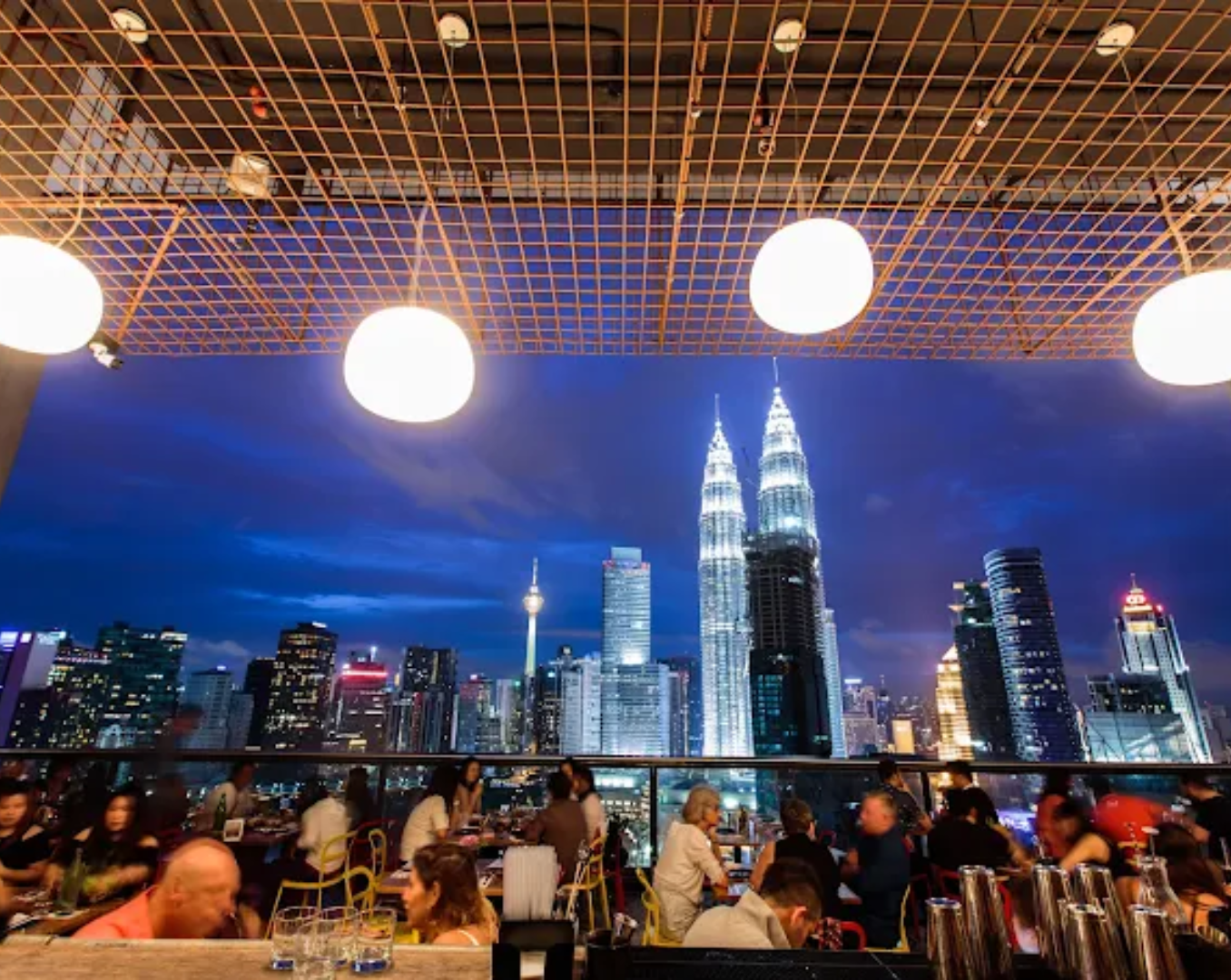 By day, it’s a functioning helipad. By night, it becomes one of the most unique KL rooftop bars in the city. This Rooftop bar KL is casual, open-air, and all about views. There’s no fine dining here, but for photos and a clear fireworks sightline, it’s hard to beat.