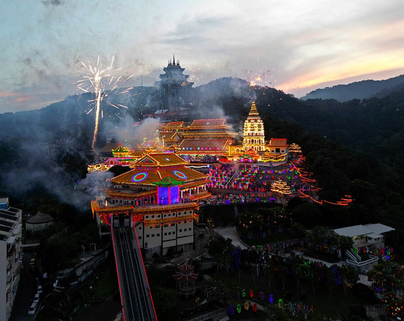 Kek Lok Si becomes one of the most beautifully lit temples in Malaysia during Chinese New Year. At night, thousands of lanterns illuminate the hillside, creating a stunning scene.